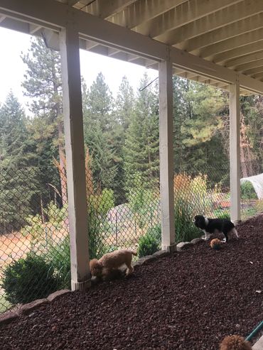 In Fall 2018, we relocated from Newport, WA to Colbert, WA. Living in the country gives our dogs the freedom to roam and enjoy plenty of outdoor time, especially during the summer. We have a fenced in area for the dogs to be in when outside and our large garden/orchard area is also fenced so our dogs often enjoy outdoor time in the garden.